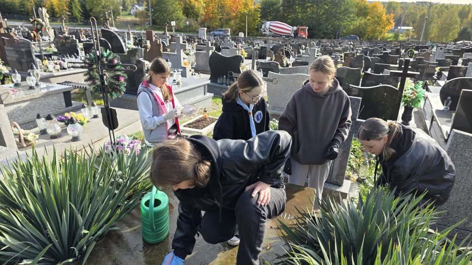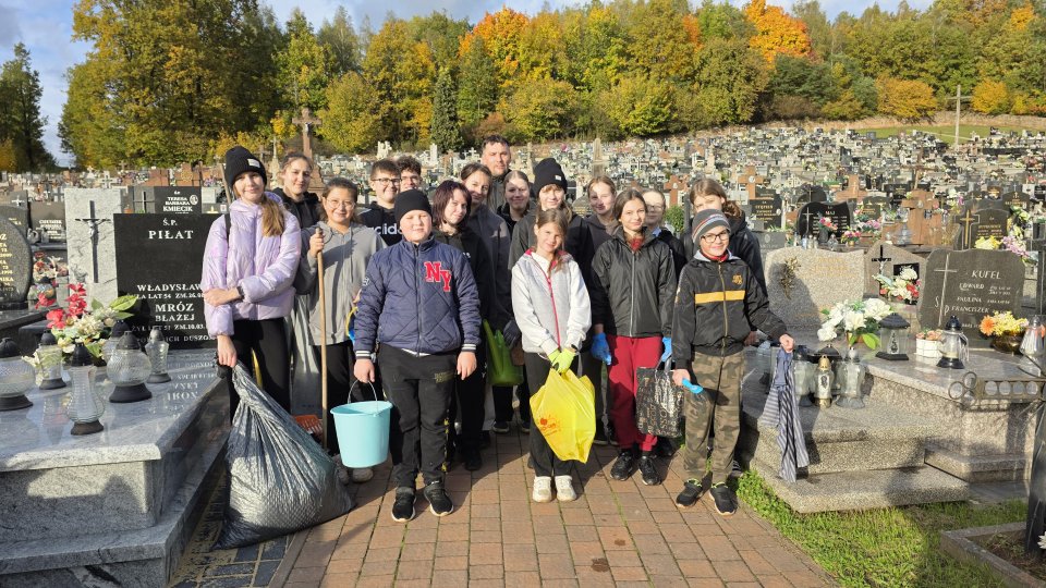 Tym razem kilkanaście druhen i druhów, uzbrojonych w grabie, szczotki i wiaderka, porządkowało groby na miejscowych cmentarzach oraz w miejscach pamięci narodowej. Chłodna jesienna aura nie zniechęciła nikogo – wręcz przeciwnie, promienie słońca przebijające się przez chmury dodawały energii i motywacji.