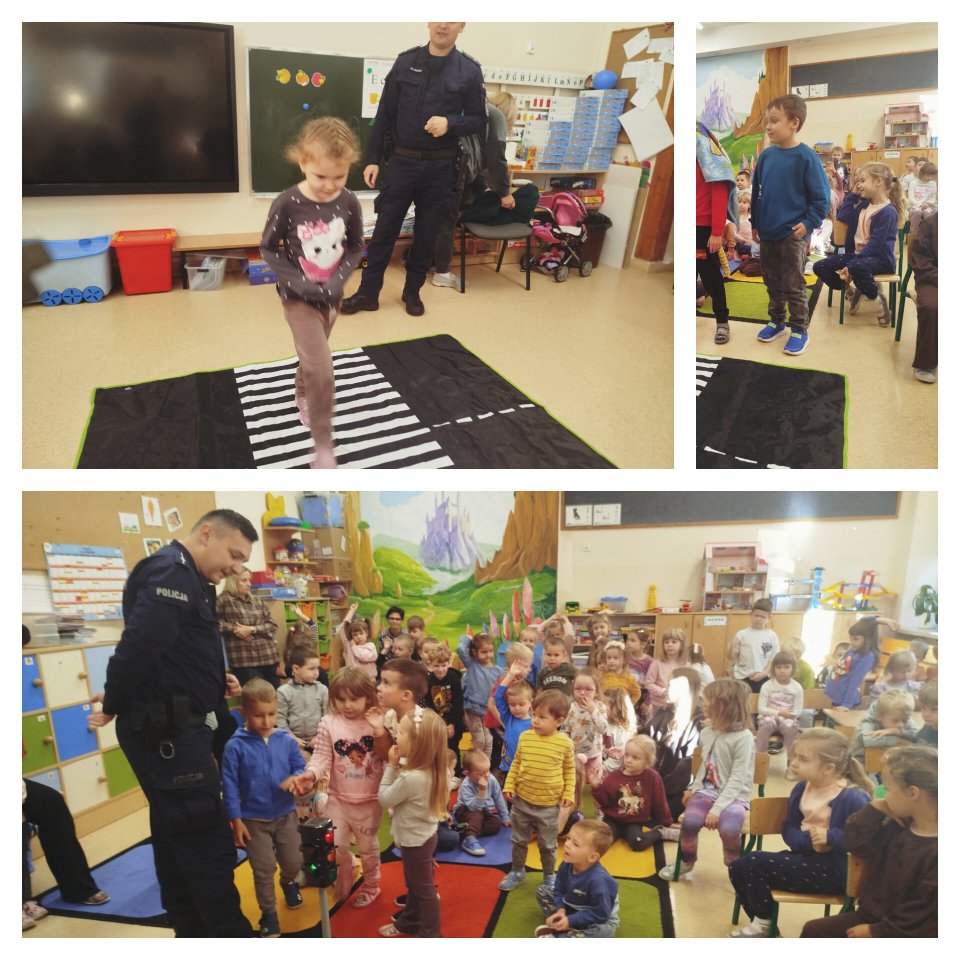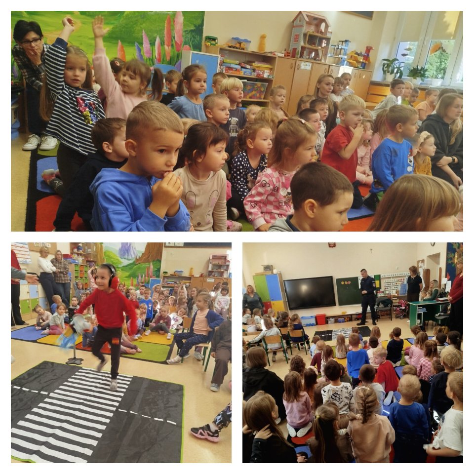 W poniedziałek, 20 października, oddziały przedszkolne gościły dzielnicowego z Komisariatu Policji w Strawczynie. Podczas spotkania dzieci uczestniczyły w zajęciach na temat bezpieczeństwa na drodze oraz zasad właściwego zachowania w sytuacjach codziennych. Pan policjant w ciekawy i przystępny sposób wyjaśnił, jak ważne jest noszenie elementów odblaskowych oraz prawidłowe przechodzenie przez jezdnię. Przedszkolaki aktywnie brały udział w rozmowie, odpowiadały na pytania i dzieliły się swoimi spostrzeżeniami. Celem spotkania było kształtowanie u dzieci postaw odpowiedzialności oraz budowanie świadomości, że policjant jest osobą, do której można zwrócić się o pomoc i która dba o bezpieczeństwo wszystkich obywateli.