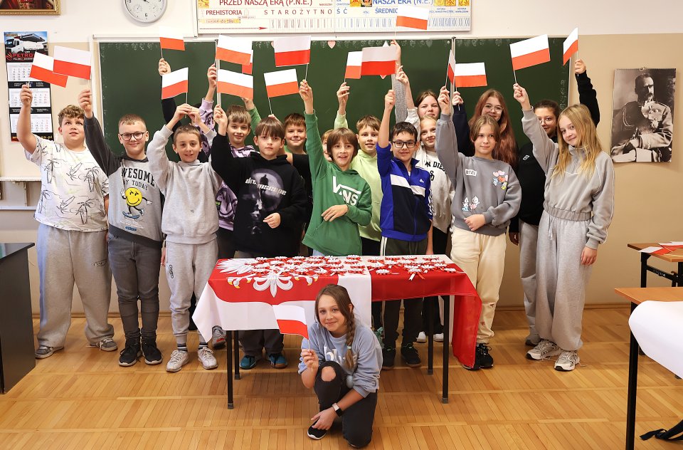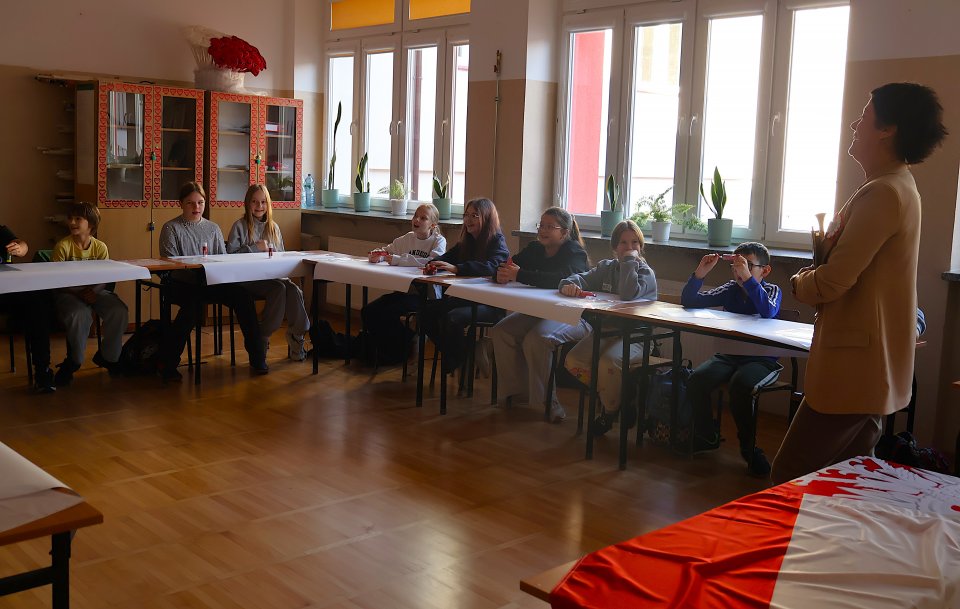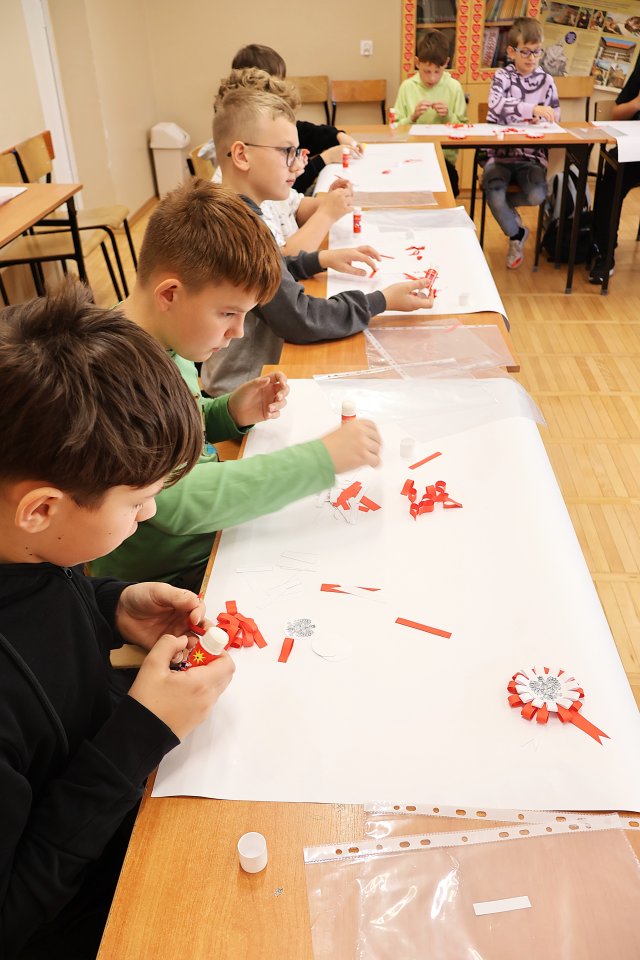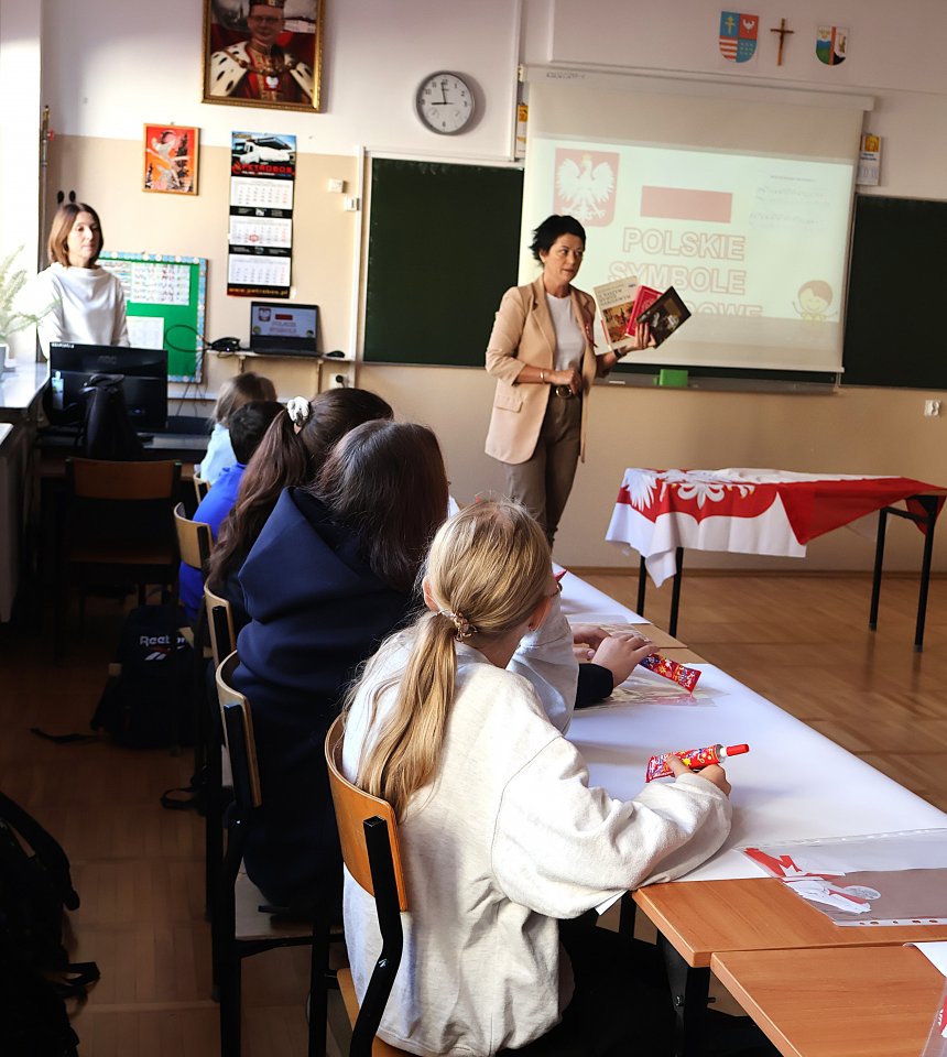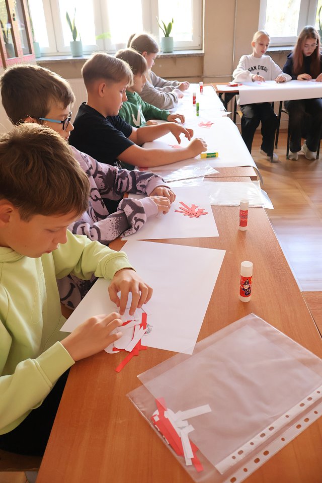 Z okazji zbliżającego się Narodowego Święta Niepodległości w dniu 23.10.2025 w naszej szkole odbyły się warsztaty edukacyjne o symbolach narodowych, które poprowadziły panie z Gminnej Biblioteki w Miedzianej Górze. Spotkanie miało na celu przybliżenie uczestnikom znaczenia niepodległości oraz ukazanie, jak ważne są wartości patriotyczne w codziennym życiu. Podczas zajęć wspólnie został odśpiewany Hymn Polski, a uczniowie z zaangażowaniem wykonali kokardy narodowe i flagi. Wszystkie prace zostaną przekazane uczestnikom konkursu ortograficznego „IV Miedzianogórskie Dyktando na Święto Niepodległości". Serdecznie dziękujemy pani dyrektor Agnieszce Opali za zorganizowanie warsztatów w naszej szkole. Dzięki takim inicjatywom biblioteka po raz kolejny udowodniła, że jest nie tylko miejscem spotkań z książką, ale także przestrzenią rozwijania pasji, wiedzy i postaw obywatelskich.
